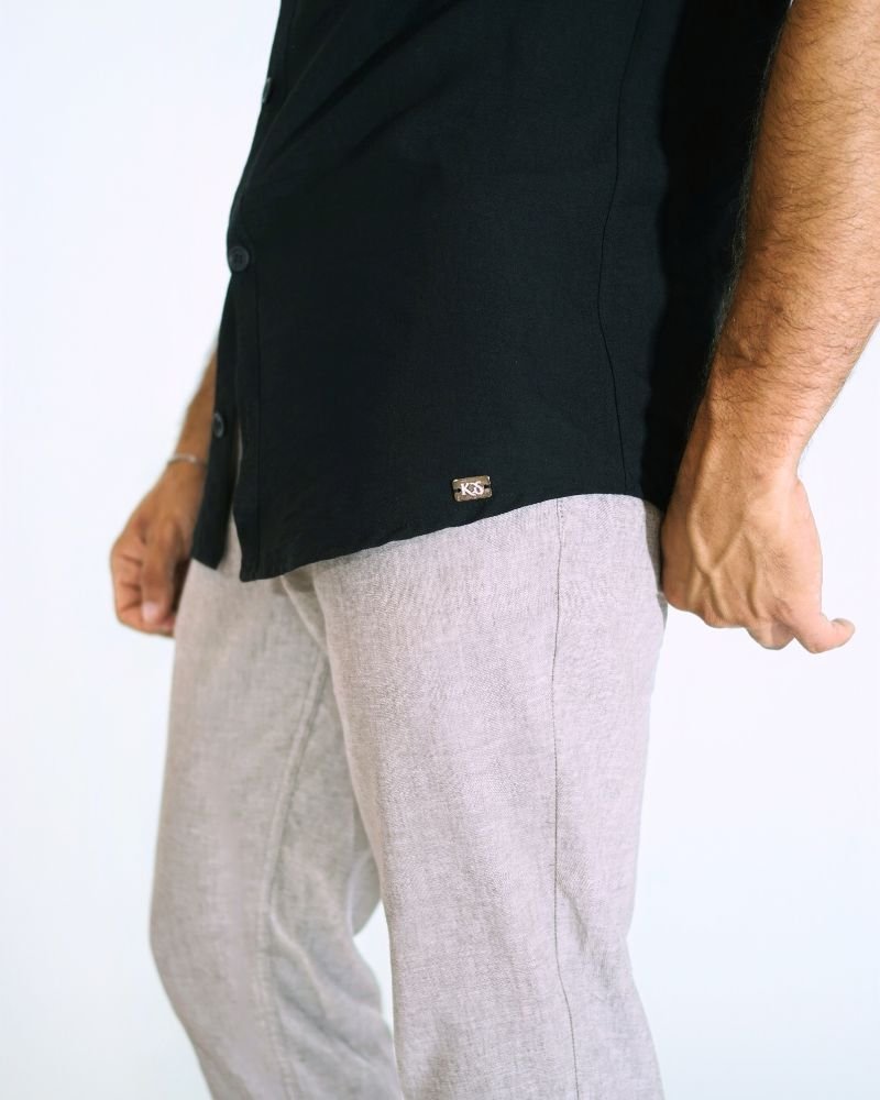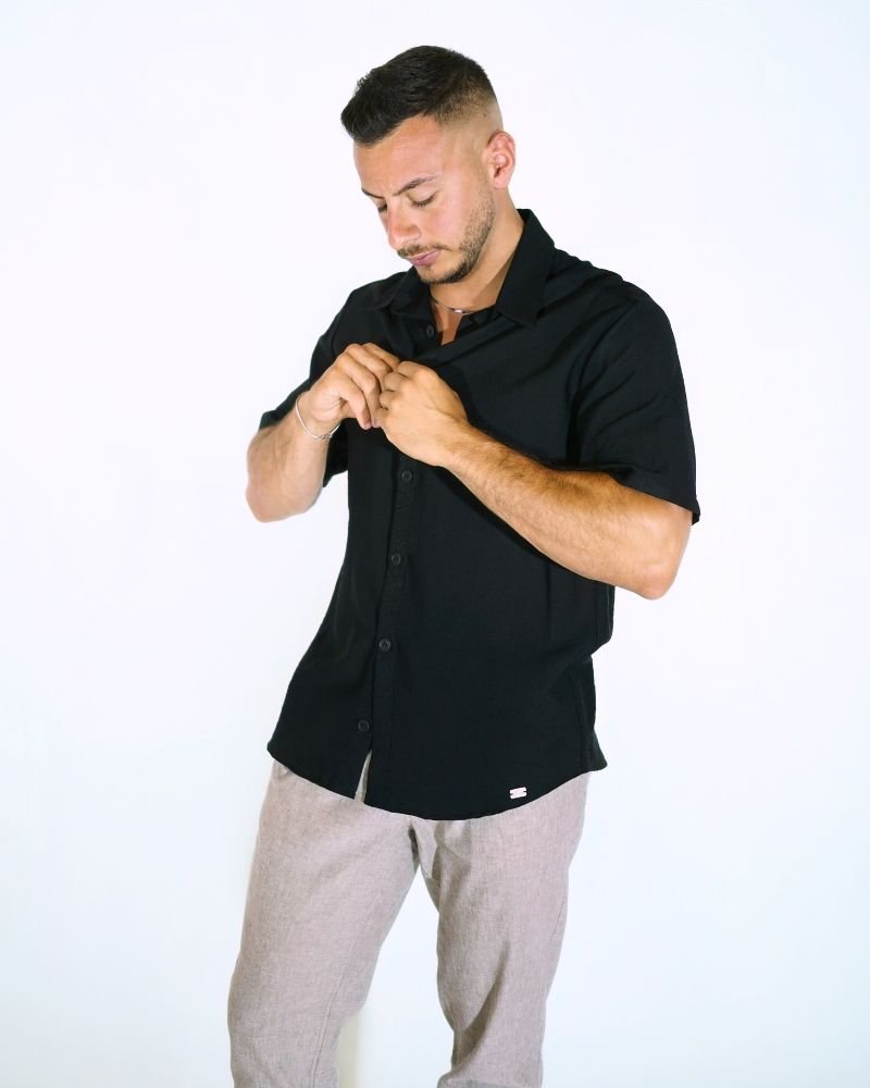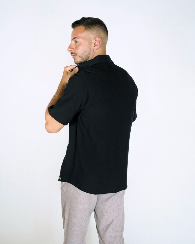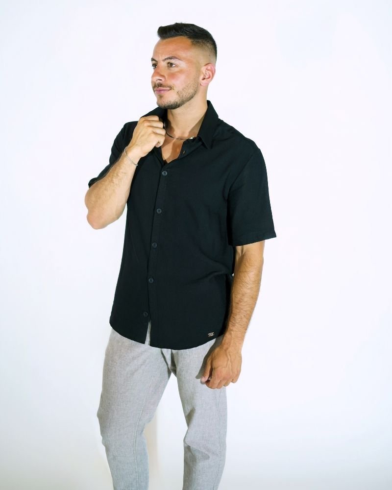 Ανάλαφρο και κομψό, το Aether Linen είναι το απόλυτο καλοκαιρινό must-have. Φτιαγμένο από δροσερό λινό ύφασμα, σε διαχρονικό μαύρο χρώμα, αυτό το κοντομάνικο πουκάμισο συνδυάζει άνεση και στυλ για κάθε στιγμή της ημέρας – από τις χαλαρές βόλτες μέχρι τις βραδινές εξόδους.