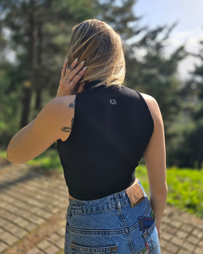 Μαύρο crop top με εξαιρετικά άνετη εφαρμογή και απαλή υφή, κάνοντας το ιδανικό για καθημερινή χρήση και casual εμφανίσεις με στυλ.