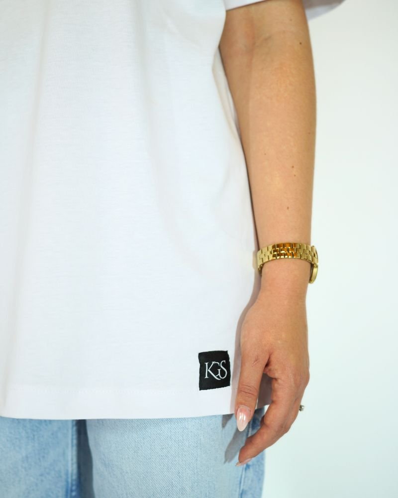 Αναβαθμίστε την καλοκαιρινή σας γκαρνταρόμπα με αυτό το άνετο και στυλάτο λευκό κοντομάνικο oversized μπλουζάκι.